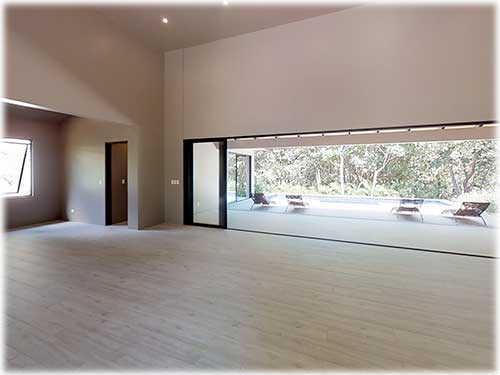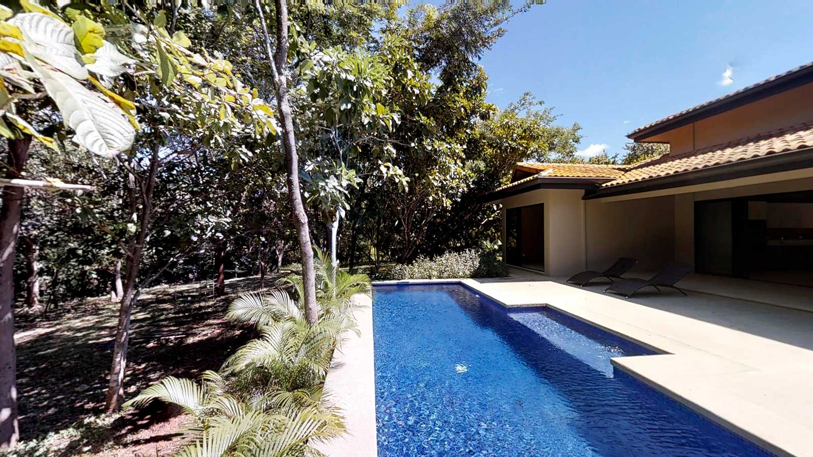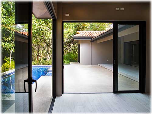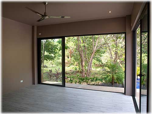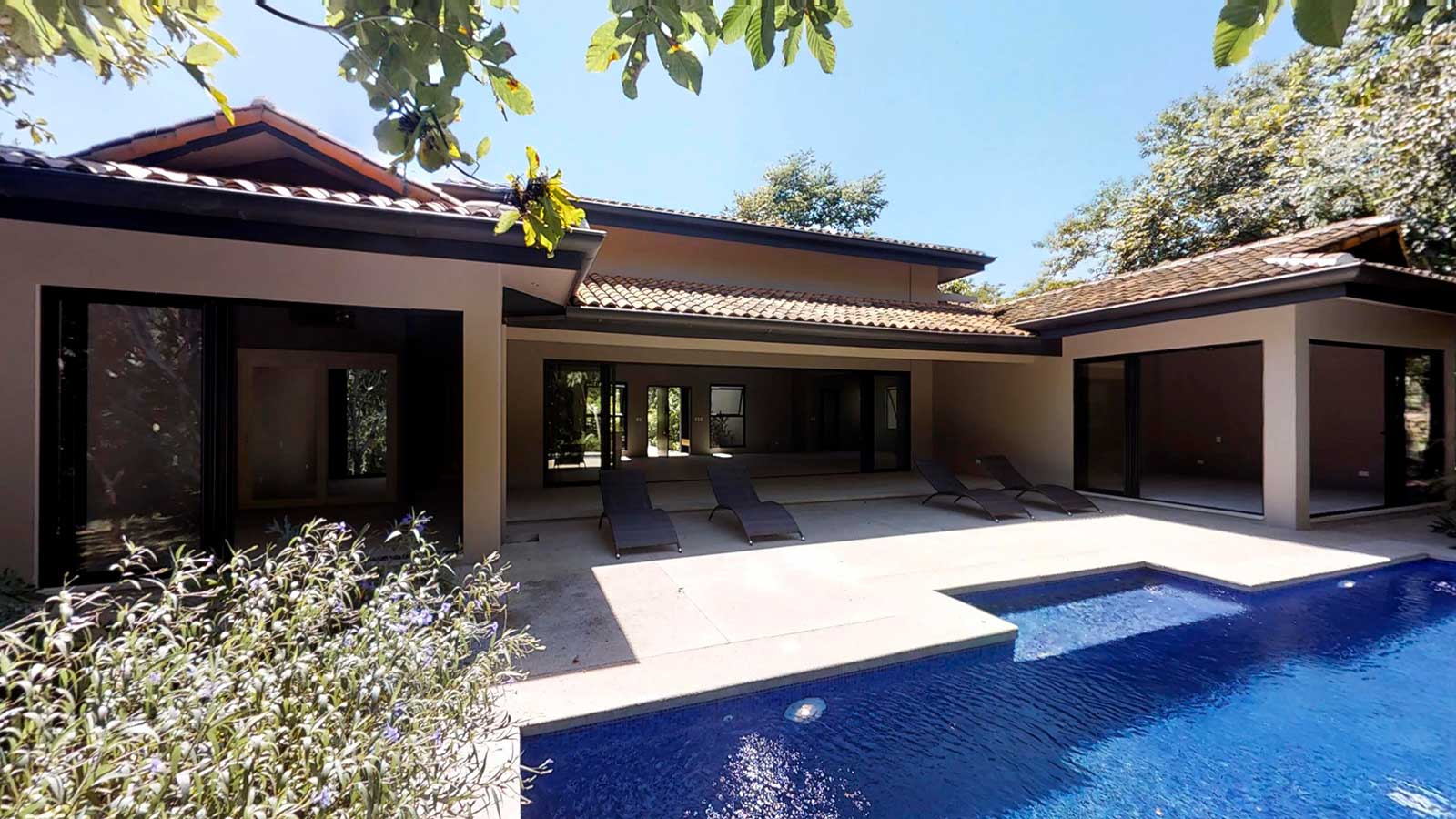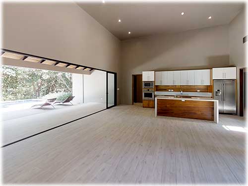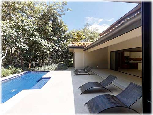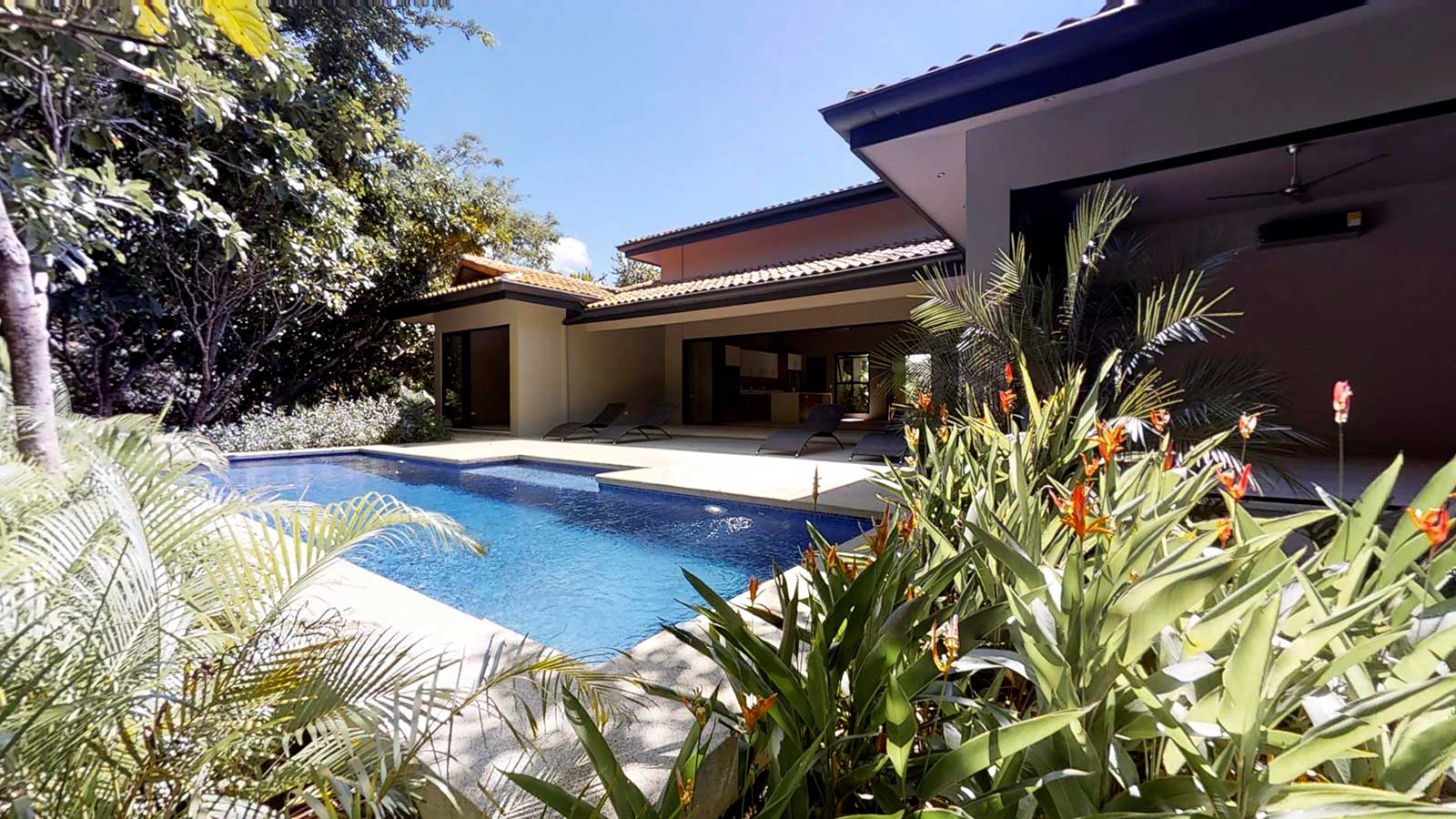 The architect created an exotic tropical design and clean contemporary aesthetic, featuring private bedroom suites, each with its own tropical garden bathroom. The large kitchen, with hardwood cabinetry and stainless steel appliances, flows to the Living Room with a high 25 ft. (7.5M) ceiling for optimal airflow. Large sliding glass doors open to a very private tropical oasis, outdoor lounge area and swimming pool surrounded by nature. During the morning, howler monkeys will patrol the lush vegetation in your backyard and at night the home is lighted up as a magical oasis. The laundry area is adjacent to the kitchen and to the spacious garage, with enough space to store your vehicle and the recreational equipment. The landscaping features low water/low maintenance xeriscape design with native species, specimen trees, river rock, and crushed stone aggregates. The homeowners association fee for this home is approximately $100/month.