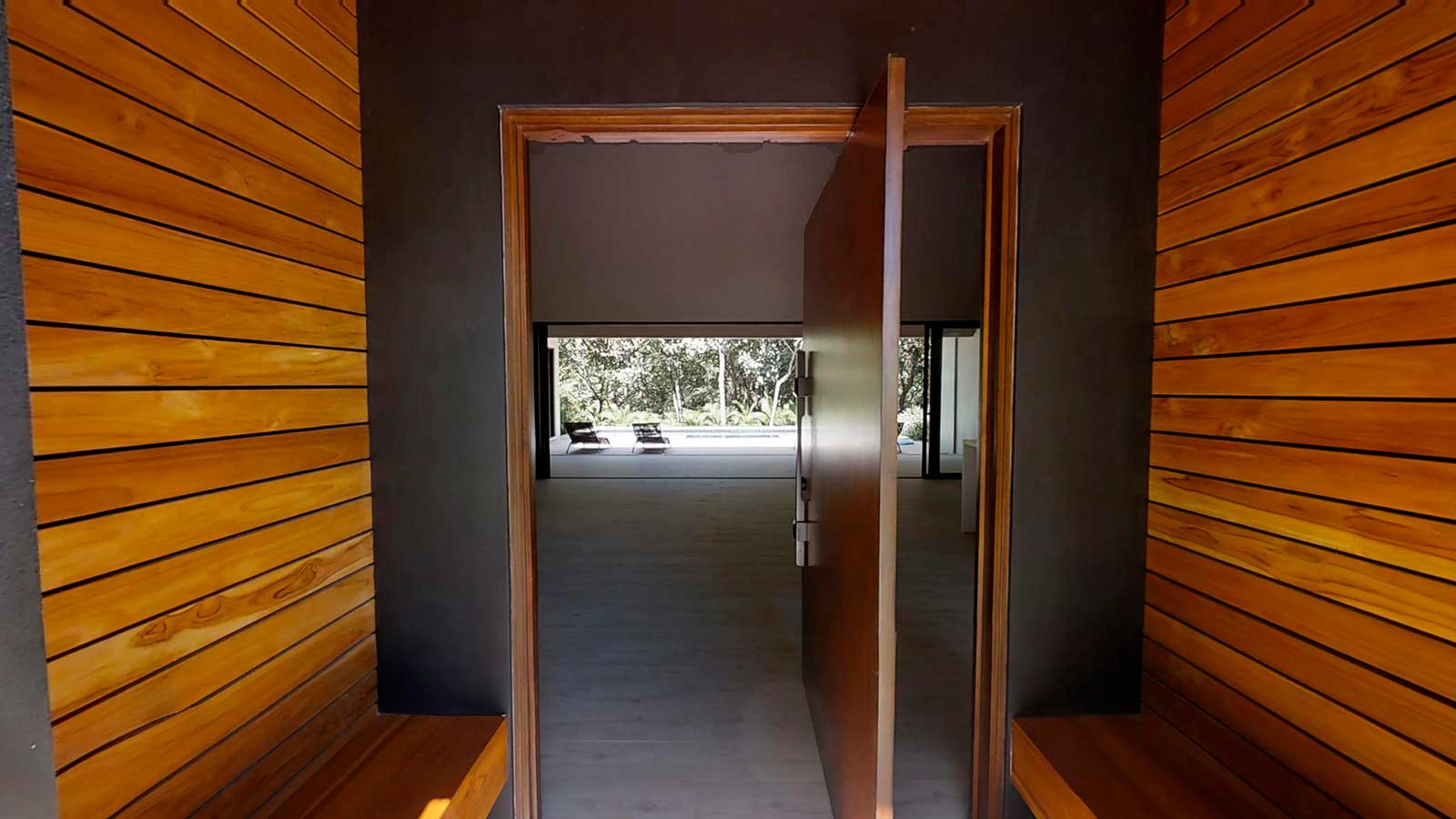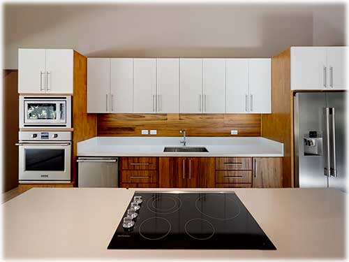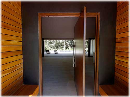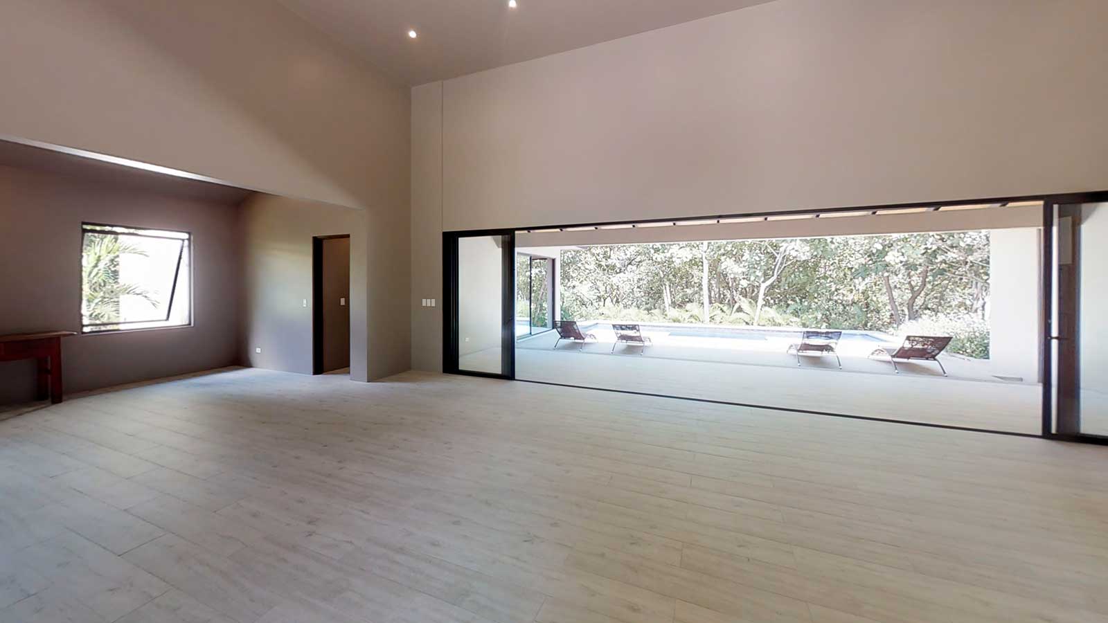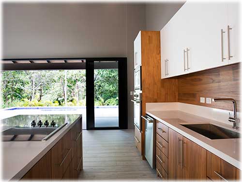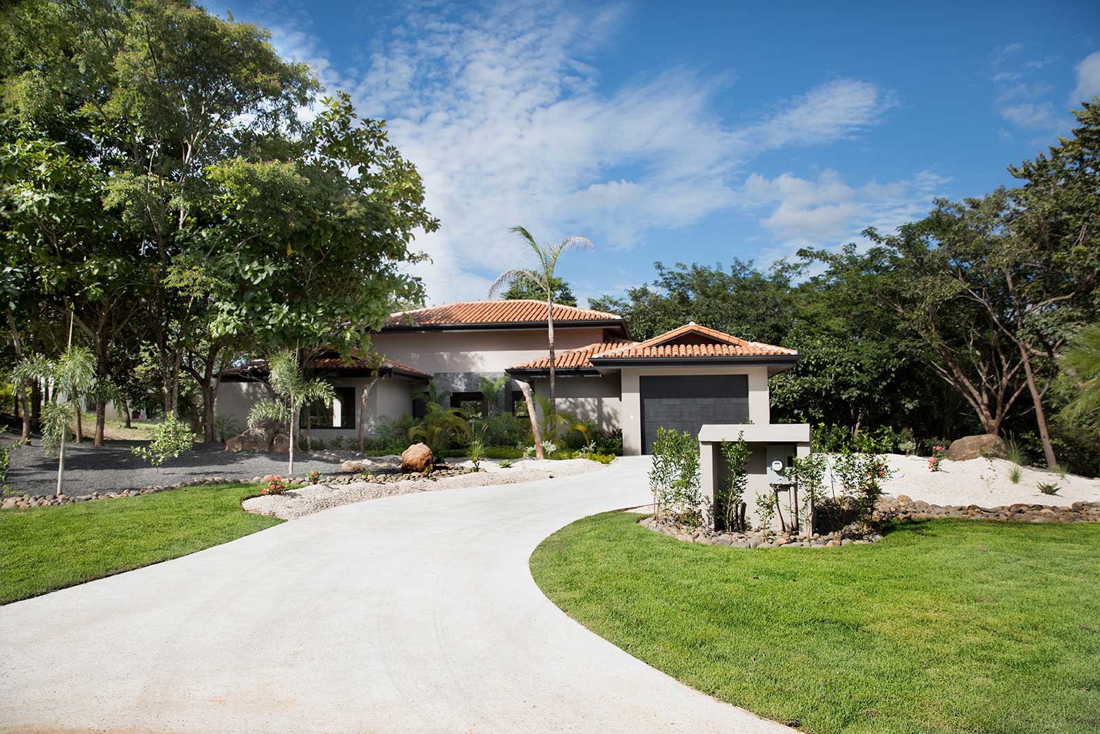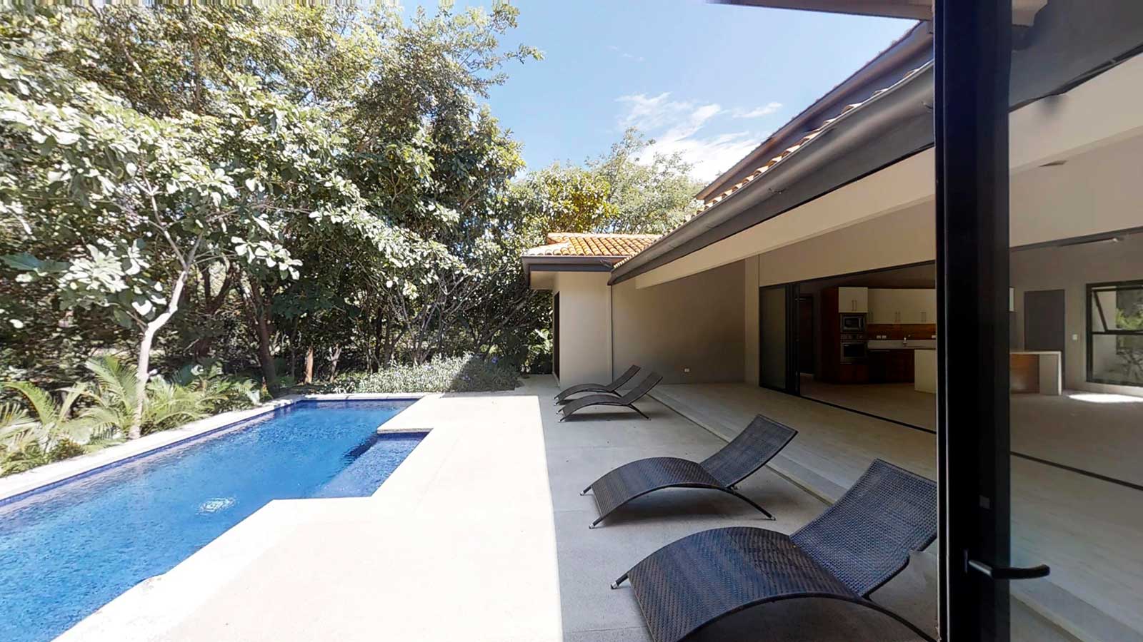 The architect created an exotic tropical design and clean contemporary aesthetic, featuring private bedroom suites, each with its own tropical garden bathroom. The large kitchen, with hardwood cabinetry and stainless steel appliances, flows to the Living Room with a high 25 ft. (7.5M) ceiling for optimal airflow. Large sliding glass doors open to a very private tropical oasis, outdoor lounge area and swimming pool surrounded by nature. During the morning, howler monkeys will patrol the lush vegetation in your backyard and at night the home is lighted up as a magical oasis. The laundry area is adjacent to the kitchen and to the spacious garage, with enough space to store your vehicle and the recreational equipment. The landscaping features low water/low maintenance xeriscape design with native species, specimen trees, river rock, and crushed stone aggregates. The homeowners association fee for this home is approximately $100/month.